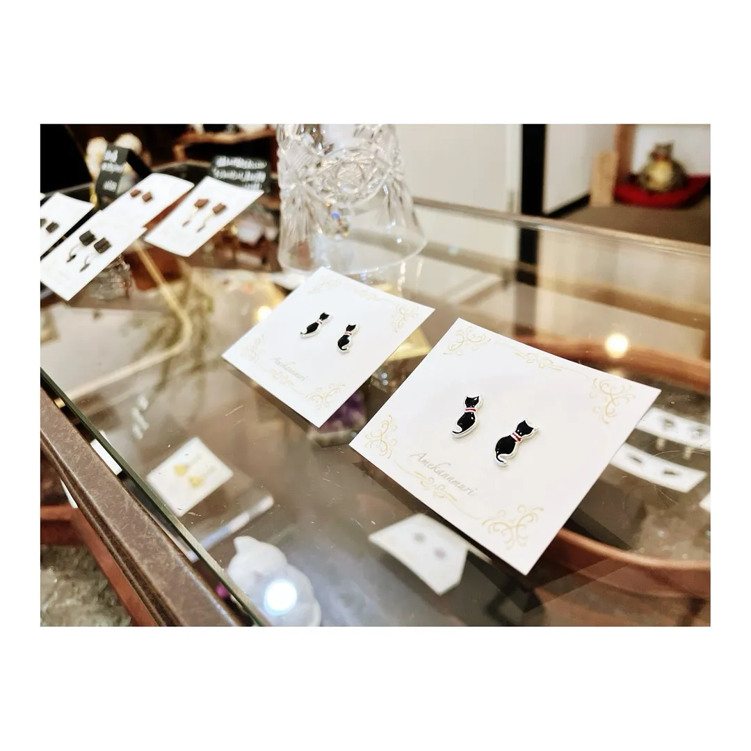 お耳にちょこんと小さな猫のイヤリングとピアスです。 耳の形って迷路みたい、螺旋階段みたいだね。耳は、音の世界に繋がってる不思議な入り口だよねなどと話してるうちに、私たちはこの子たちのことを、…